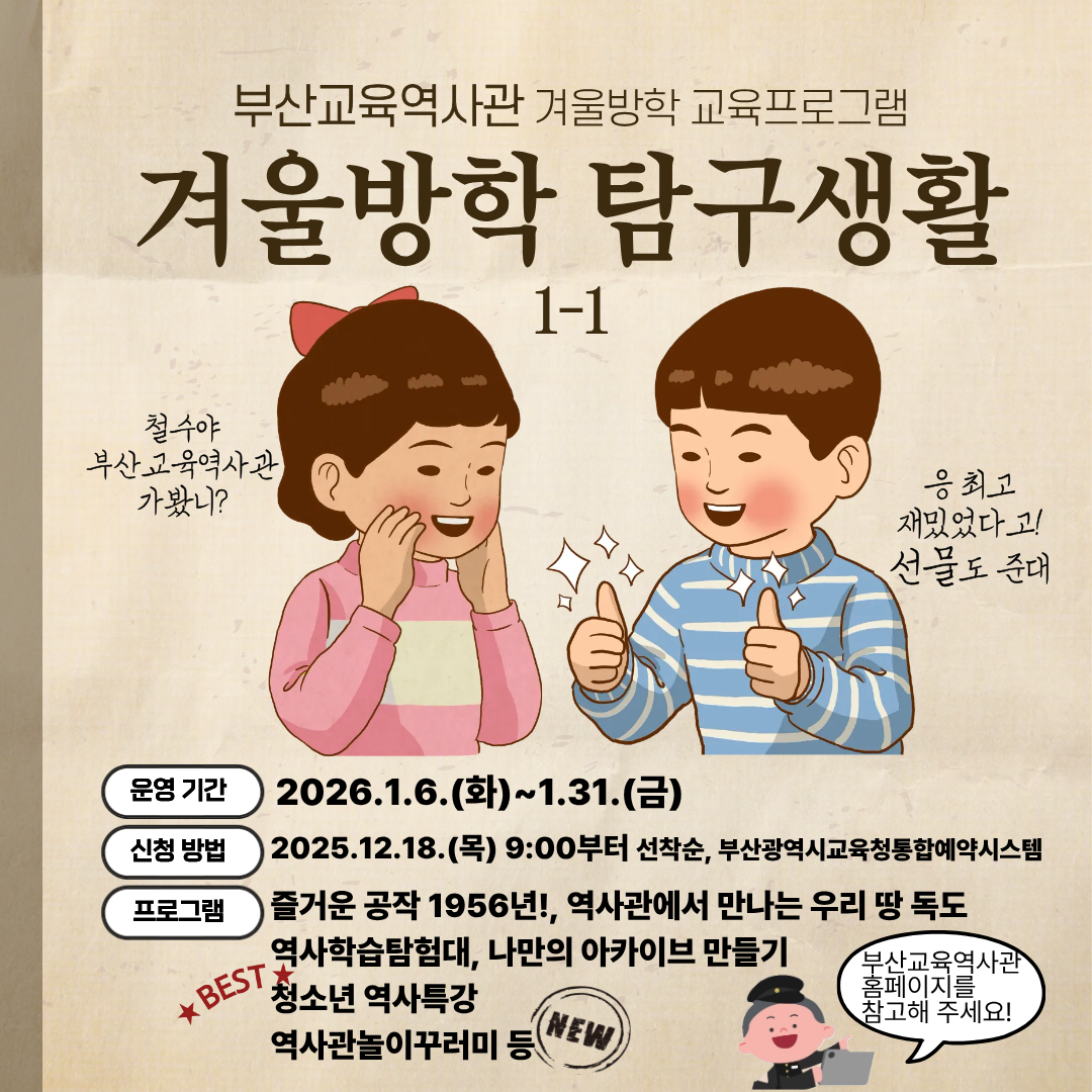 부산교육역사관 겨울방학 교육프로그램 신청 안내